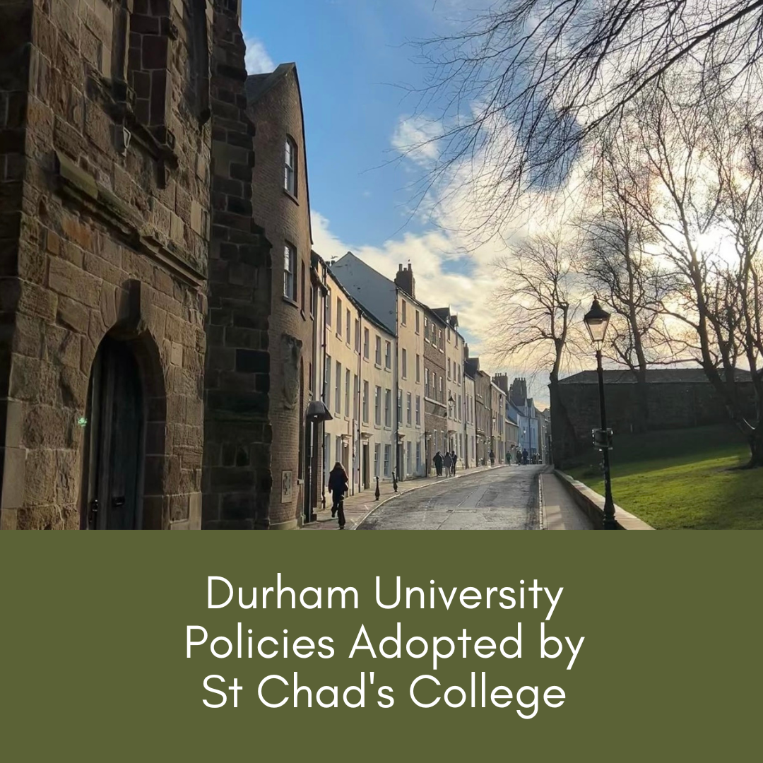 Official DocumentsCollege StrategyRead the College Strategy 2017-2027 here.More InformationGovernanceClick here for information about governors and governance.More information hereCollege HandbookThe 'go to' guide for all students at St Chad's College.Click hereIncident PlansRead our major and critical incident plans here.More InformationSafeguarding & PreventPolicies in relation to safeguarding and Prevent.More information hereOperations and H & SPolicies relating to operational matters in College.More information hereData ManagementInformation about data management at St Chad's College.More information hereComplaints PoliciesPolicies and procedures in relation to student complaints.More information hereDU Policies AdoptedPolicies adopted by St Chad's from Durham University.More information here